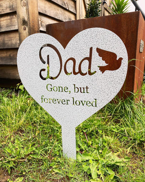 A beautiful piece to memorialize loved ones. This memorial remembrance ground stake is a nice graveside piece, or a personal piece that can be inserted into the ground, a flower bed or garden to remember your loved one every time you see it.