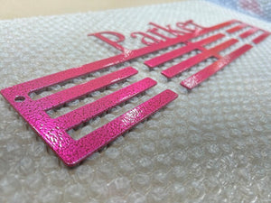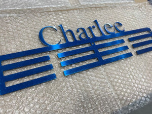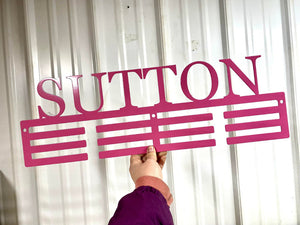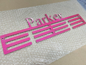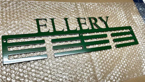 Our medal hanger is custom made to order. It will be made with the name of your choice and powder coated to the color of your choice. The perfect gift for anyone with a collection of medals!