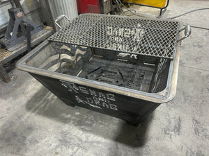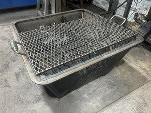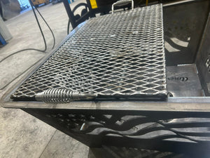 • All of our grates are made using 1/4" thick carbon steel and expanded steel. Spring handles are used as the handles for a comfortable grip while moving it. We recommend wearing a good pair of work gloves or high heat grill gloves while using.