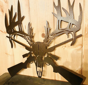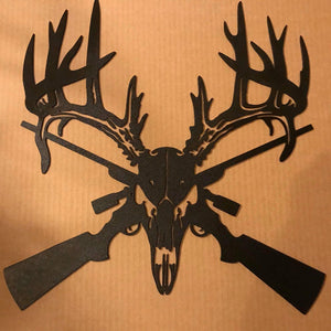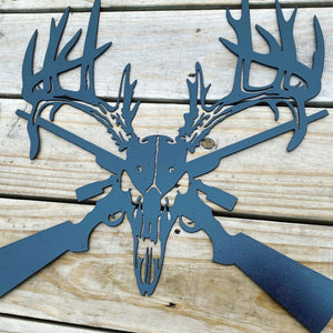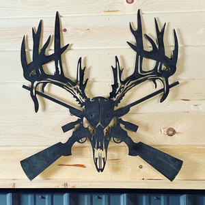 Deer Skull and Guns Metal Sign - A great addition to your space and a wonderful gift to others. Perfect for the hunter in your life