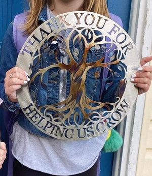 This sign is the perfect gift of showing appreciation to teachers, grandparents, parents, Aunts, Uncles, etc. It reads "THANK YOU FOR HELPING US GROW" or "THANK YOU FOR HELPING ME GROW"