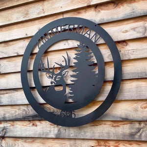 Personalized Deer and Pine Tree Sign, perfect for address numbers, gifts and more.