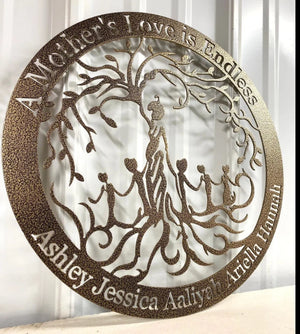 Metal Mother and Children Tree of Life. A great gift for Mothers, Grandmas, Aunts etc. This sign will be cherished. Can fit up to 5 children. Please write the names in the personalization box.