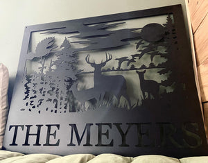 Showcase your love for the outdoors with our personalized wildlife sign featuring a family of deer, turkey, and ducks. It's the perfect gift for hunters and nature lovers, or a welcoming addition to your family room.