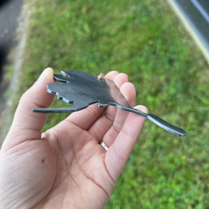Our ornaments are a great addition to your tree and a perfect gift for any friends, family, teachers, etc. Made from durable 14g steel. Hand ground to a beautiful shine.
