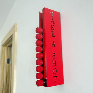 Made from durable steel, these shot dispensers make the perfect gift or addition to any garage, home bar, etc. Can be personalized with a last name or a short phrase, such as "Take A Shot", etc.