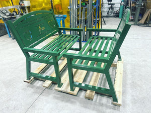 Benches and other Custom Steel Furniture have a 4-6 week production time from the time the order is placed to when they ship