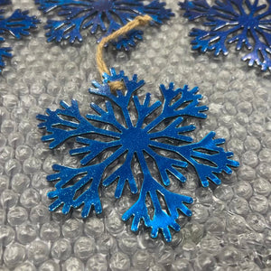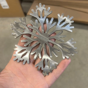 Raw steel is a beautiful and rustic choice. Raw steel has it's own natural blemishes and no two pieces will look the same! Raw steel is does not have a finishing layer, so it may eventually show slight rust. This is a great, rustic look. But if you do not like it, it CAN be removed by brushing it gently with a piece of steel wool. Choose a Powder Coat Finish if You Want Color Added to the Metal Snowflake and for added Durability